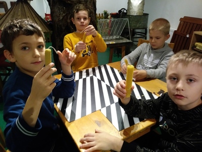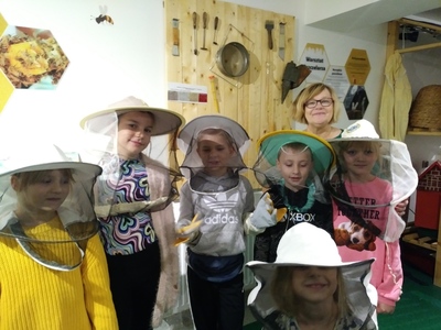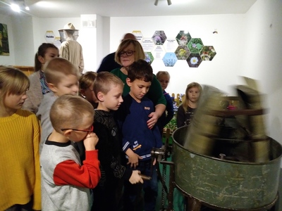 Pod koniec października wybraliśmy się na wycieczkę do Muzeum Miodu w Pszczółkach. Pani Ewa zapoznała nas z ciekawostkami dotyczącymi życia pszczół i ciekawej pracy pszczelarza. Mogliśmy obejrzeć i sprawdzić jak działają maszyny oraz urządzenia niezbędne do prawidłowego funkcjonowania ula i zbioru miodu. Wzięliśmy również udział w warsztatach, na których wykonaliśmy świeczki z węzy. Oczywiście nie zabrakło słodkiej przyjemności, jaką była degustacja miodu. Zapraszamy do obejrzenia zdjęć.