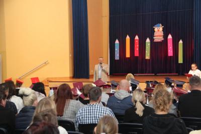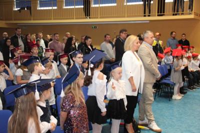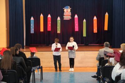 16 października 2025 roku w naszej szkole odbyło się uroczyste ślubowanie uczniów klas pierwszych: 1a, 1b oraz 1c. Nasi najmłodsi uczniowie stali się pełnoprawnymi członkami społeczności szkolnej. Uroczystość miała wyjątkowy charakter – pierwszoklasiści zaprezentowali przygotowany z tej okazji występ artystyczny, który wzbudził wiele emocji i wzruszeń. Wydarzenie uświetnili również konferansjerzy z klasy czwartej, którzy z dużym zaangażowaniem prowadzili całą ceremonię. Na uroczystość zostali zaproszeni rodzice, którzy z dumą i radością obserwowali swoje dzieci w tym ważnym dla nich dniu. To był niezapomniany moment, który na długo pozostanie w naszej pamięci. Wszystkim pierwszoklasistom życzymy wielu sukcesów, radości z nauki i pięknych chwil spędzonych w murach naszej szkoły!