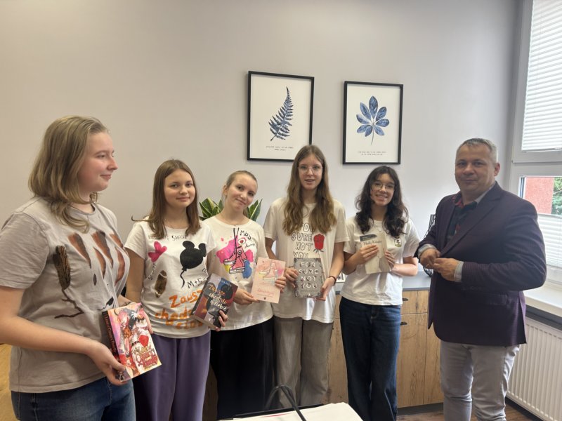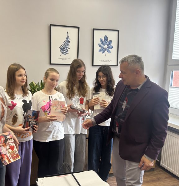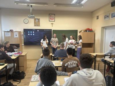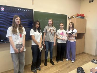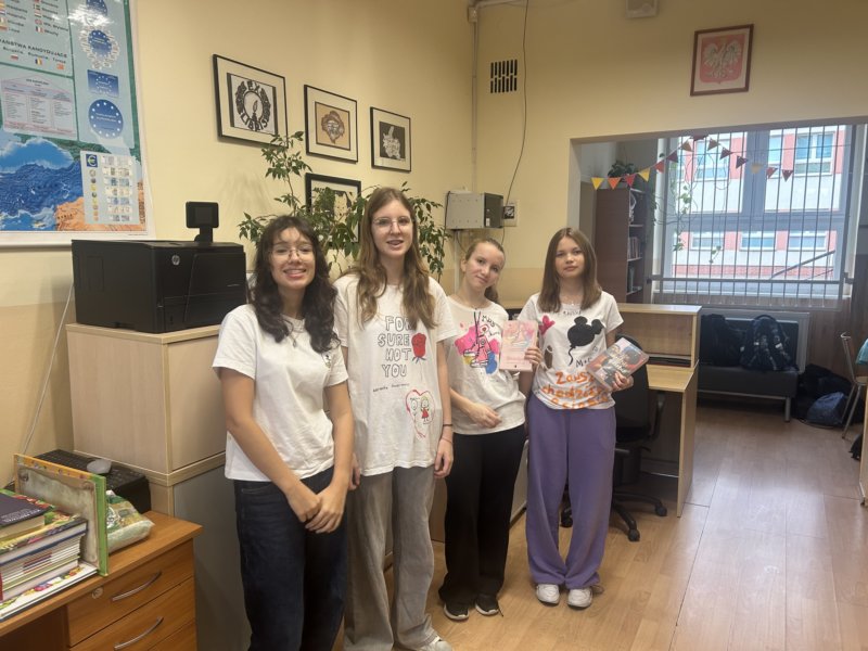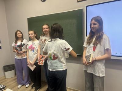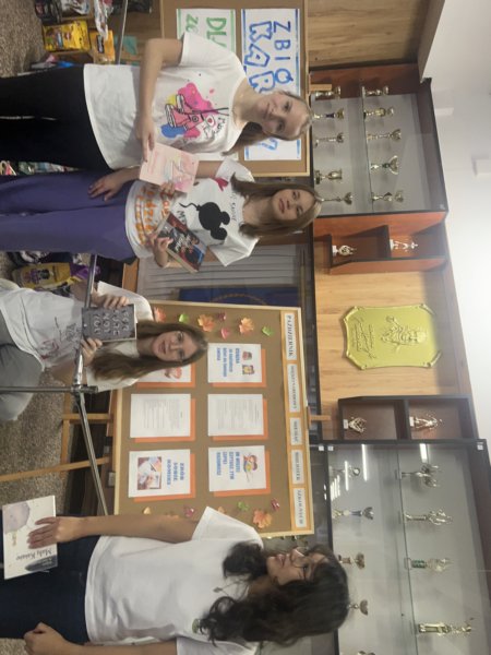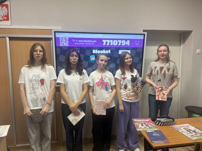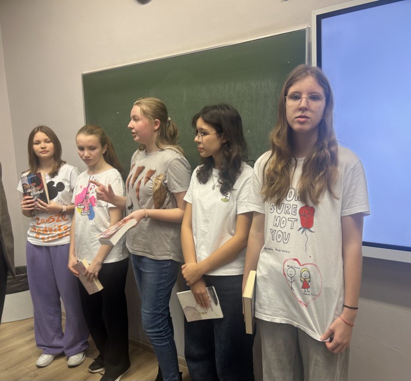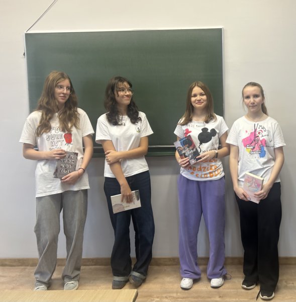 28 października 2025 r. w ramach obchodów Międzynarodowego Miesiąca Bibliotek Szkolnych uczennice klasy VIII C: Maja Górska, Oliwia Stencel, Małgorzata Switalla, Dominika Wolska, Agata Ziemann prezentowały zaprojektowane i wykonane na koszulkach reklamy książek , które polecają do przeczytania swoim koleżankom i kolegom. Oglądający docenili wysiłek włożony w realizację. Projekty uznano za bardzo interesujące , wartościowe artystycznie i zachęcające do przeczytania proponowanych lektur.