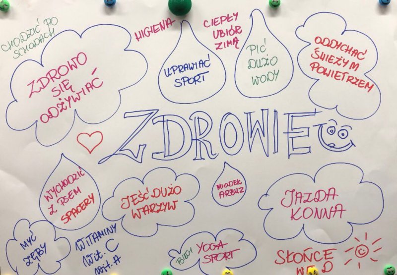Kolejnym tematem naszych spotkań z Apteczki było ZDROWIE „W zdrowym ciele – zdrowy duch” kryje w sobie wiele prawdy. Nasze dobre samopoczucie, zadowolenie, radość są ściśle powiązane z kondycją fizyczną, brakiem choroby i innych dolegliwości. Celem spotkania było uświadomienie dzieciom zależności między sposobem odżywiania i aktywnością fizyczną a stanem zdrowia i samopoczuciem.