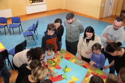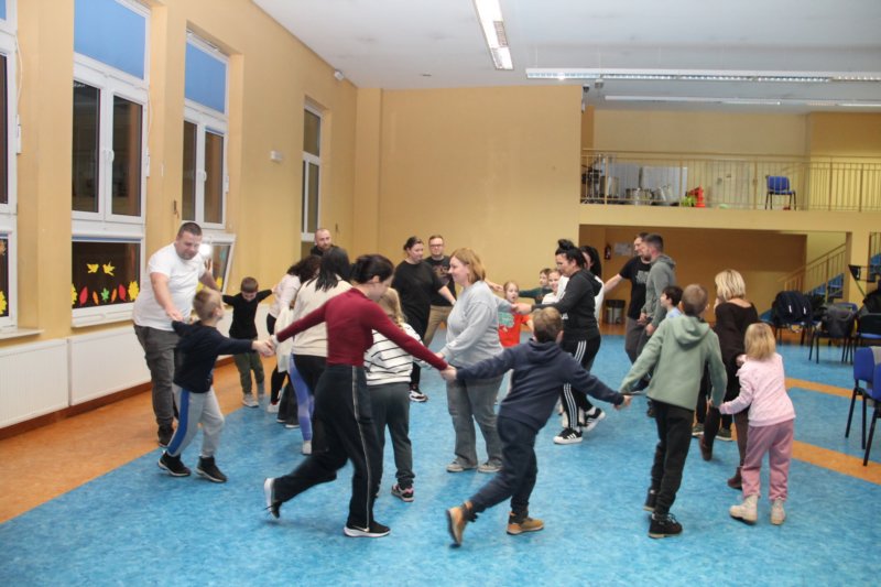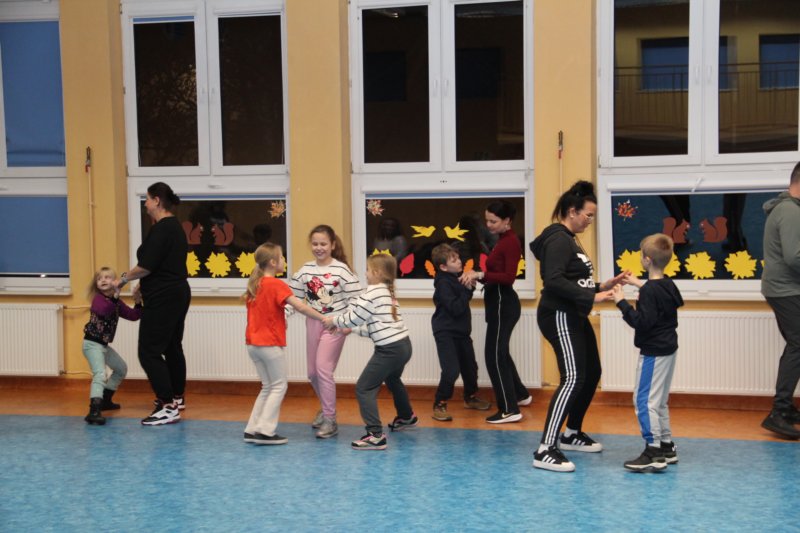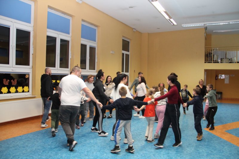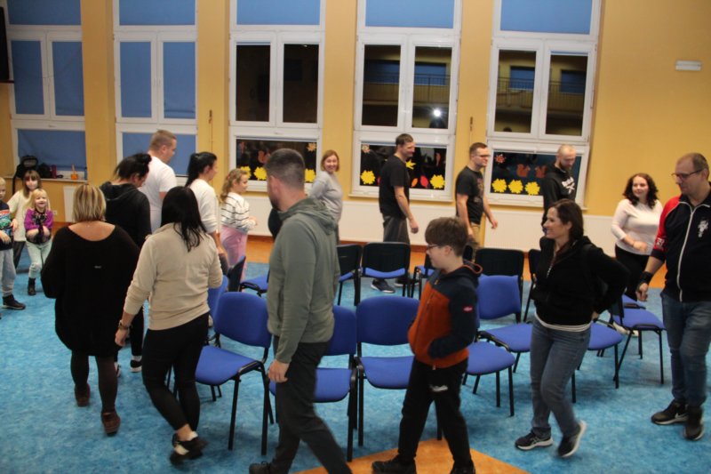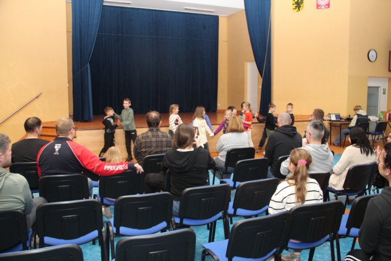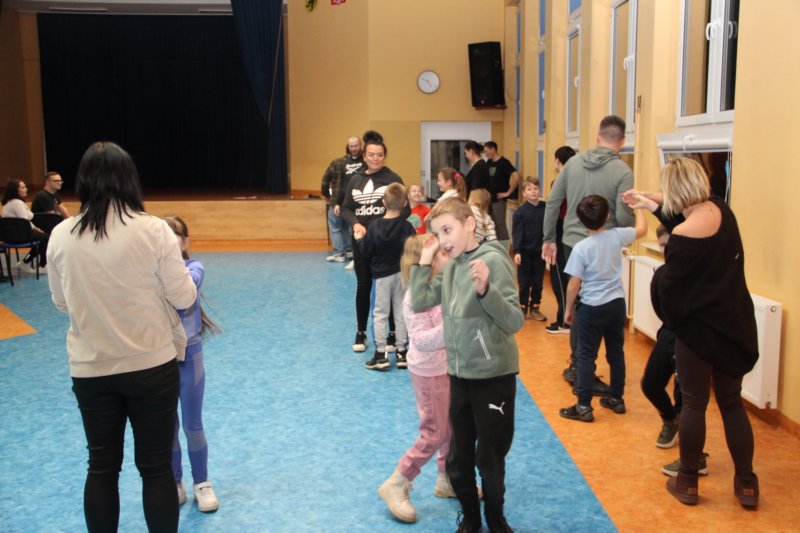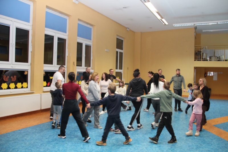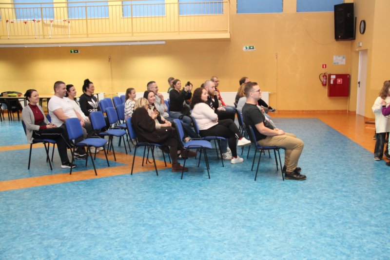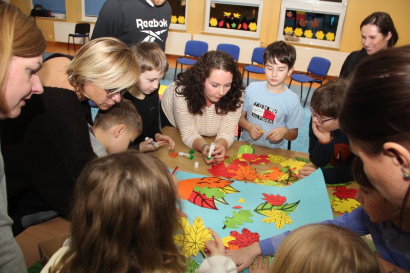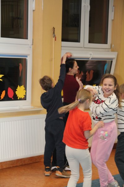 25 października w kasie 2 b w auli naszej szkoły, odbyło się spotkanie z rodzicami. Uczniowie przedstawili swoje umiejętności wokalne w krótkim występie artystycznym. Następnie zaprosili swoich najbliższych do jesiennego kujawiaczka i zabaw przy jesiennych utworach. Kolejnym zadaniem było zebranie jak najwięcej zapasów do koszyczka dla wiewiórek. Jesień przyniosła ze sobą mnóstwo zabaw i zadań, które tym razem pozwoliły nam wszystkim uruchomić naszą wyobraźnię oraz odwołać się do naszych doświadczeń i zdobytej wiedzy na zajęciach. Zgromadzeni goście przygotowali pracę plastyczną : Panią Jesień .Wszyscy uczestnicy wykazali się dużą kreatywnością  w tworzeniu swojego dzieła. Czas spędzony na wspólnej zabawie przyniósł wszystkim uczestnikom dużo radości i zadowolenia i na pewno pozostanie na długo w naszej pamięci.