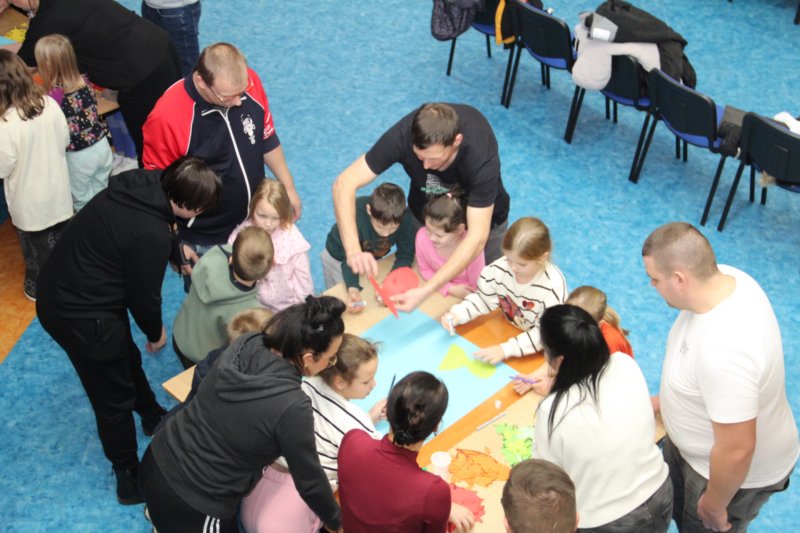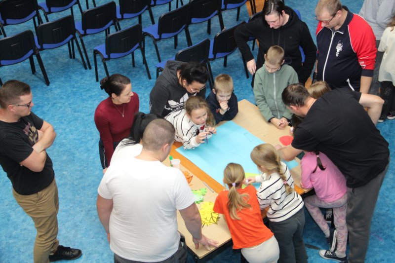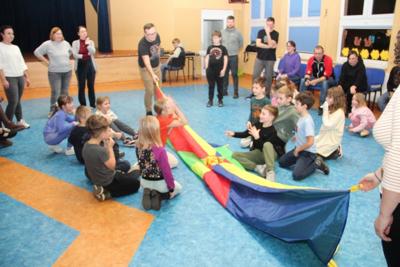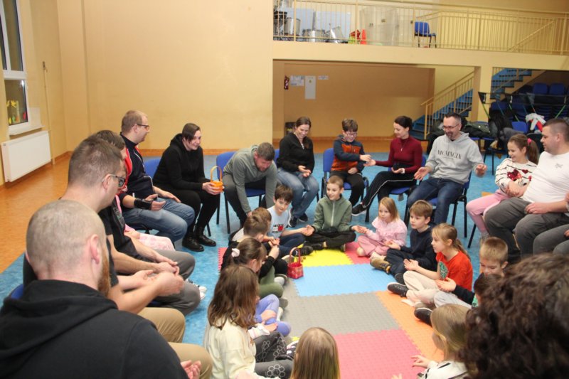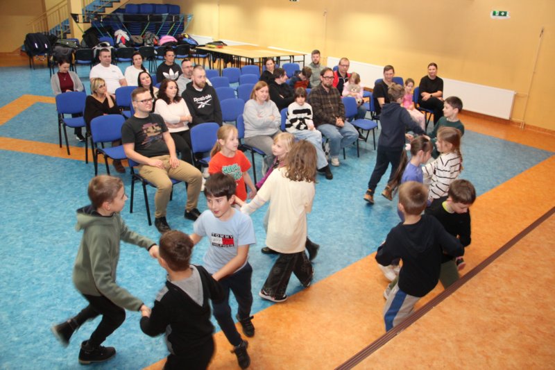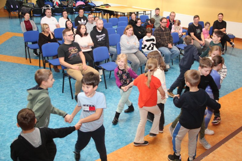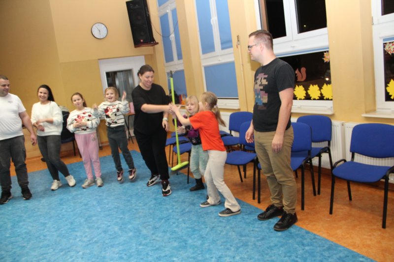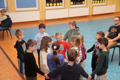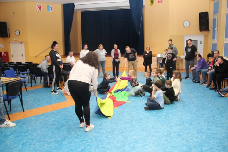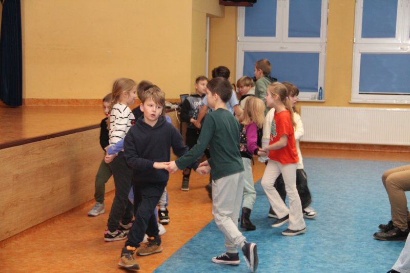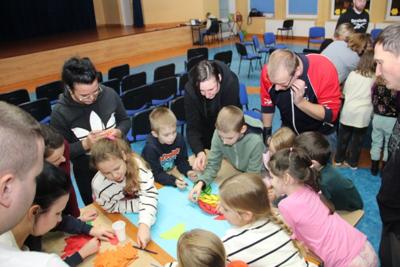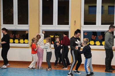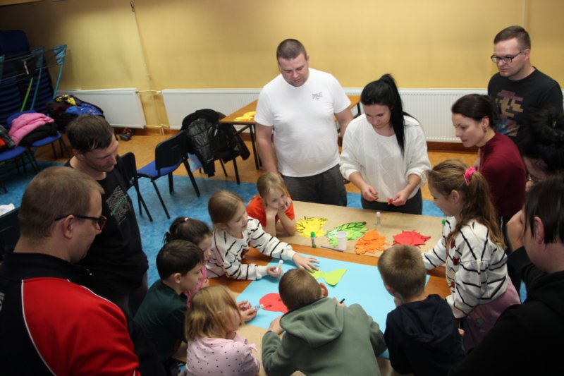 25 października w kasie 2 b w auli naszej szkoły, odbyło się spotkanie z rodzicami. Uczniowie przedstawili swoje umiejętności wokalne w krótkim występie artystycznym. Następnie zaprosili swoich najbliższych do jesiennego kujawiaczka i zabaw przy jesiennych utworach. Kolejnym zadaniem było zebranie jak najwięcej zapasów do koszyczka dla wiewiórek. Jesień przyniosła ze sobą mnóstwo zabaw i zadań, które tym razem pozwoliły nam wszystkim uruchomić naszą wyobraźnię oraz odwołać się do naszych doświadczeń i zdobytej wiedzy na zajęciach. Zgromadzeni goście przygotowali pracę plastyczną : Panią Jesień .Wszyscy uczestnicy wykazali się dużą kreatywnością  w tworzeniu swojego dzieła. Czas spędzony na wspólnej zabawie przyniósł wszystkim uczestnikom dużo radości i zadowolenia i na pewno pozostanie na długo w naszej pamięci.