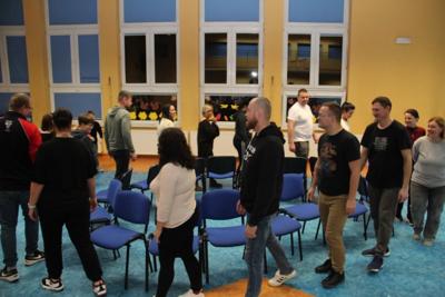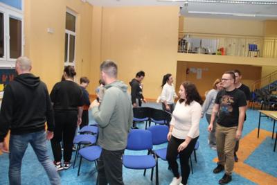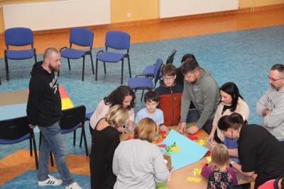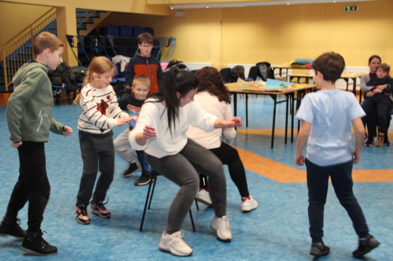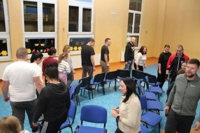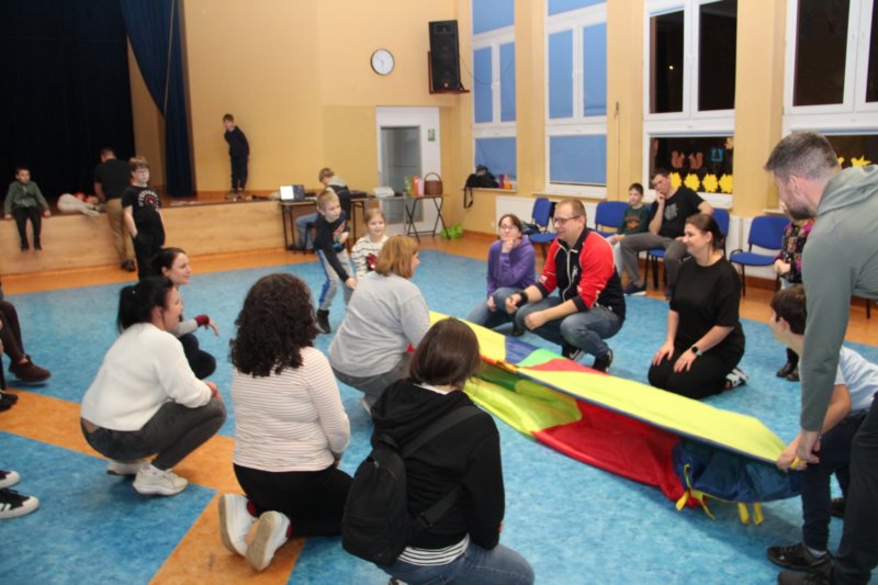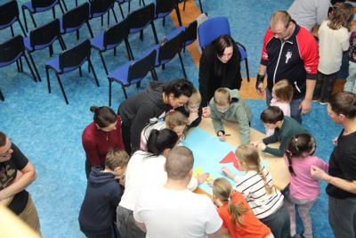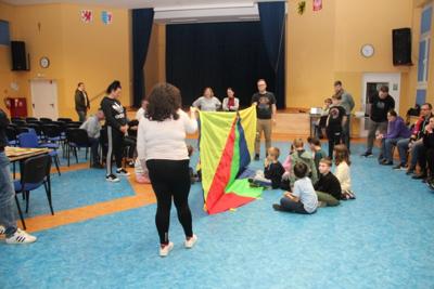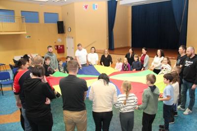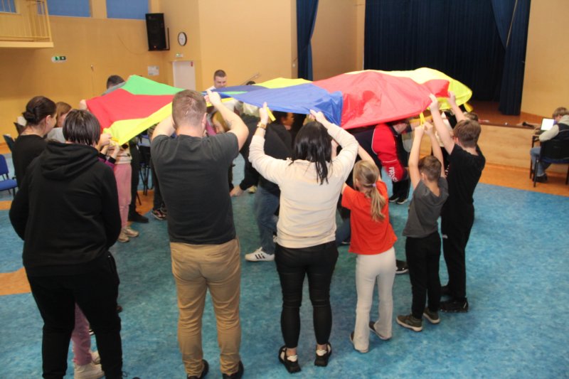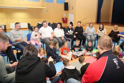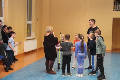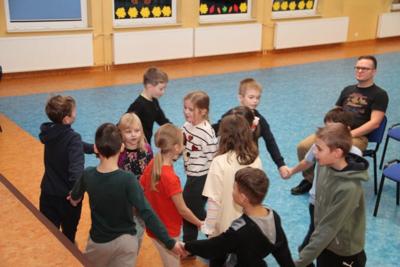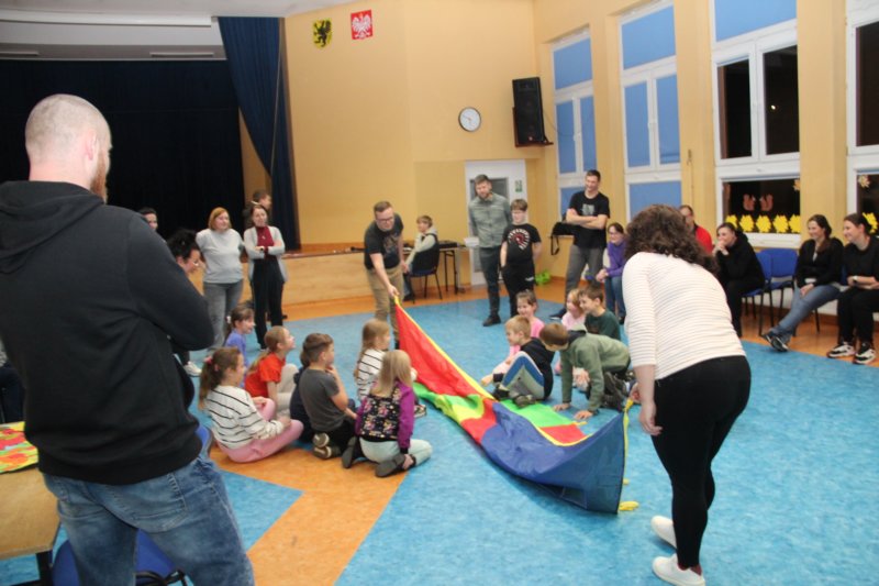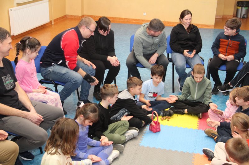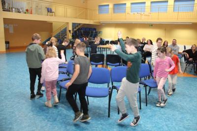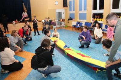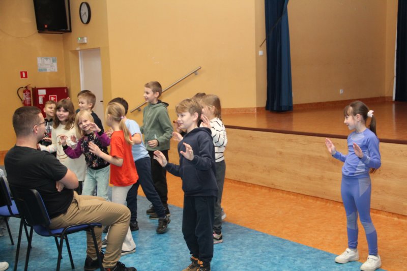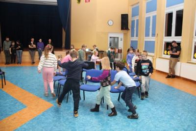 25 października w kasie 2 b w auli naszej szkoły, odbyło się spotkanie z rodzicami. Uczniowie przedstawili swoje umiejętności wokalne w krótkim występie artystycznym. Następnie zaprosili swoich najbliższych do jesiennego kujawiaczka i zabaw przy jesiennych utworach. Kolejnym zadaniem było zebranie jak najwięcej zapasów do koszyczka dla wiewiórek. Jesień przyniosła ze sobą mnóstwo zabaw i zadań, które tym razem pozwoliły nam wszystkim uruchomić naszą wyobraźnię oraz odwołać się do naszych doświadczeń i zdobytej wiedzy na zajęciach. Zgromadzeni goście przygotowali pracę plastyczną : Panią Jesień .Wszyscy uczestnicy wykazali się dużą kreatywnością  w tworzeniu swojego dzieła. Czas spędzony na wspólnej zabawie przyniósł wszystkim uczestnikom dużo radości i zadowolenia i na pewno pozostanie na długo w naszej pamięci.