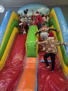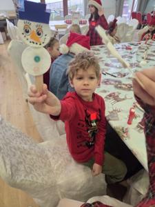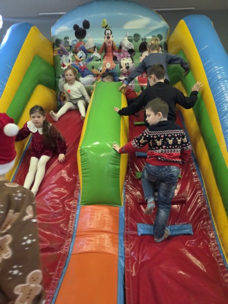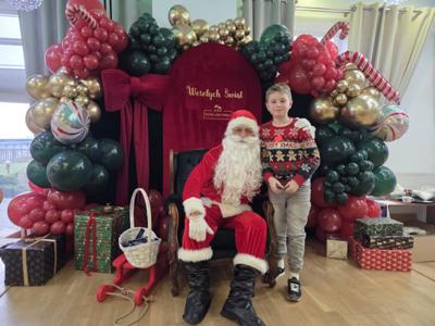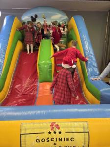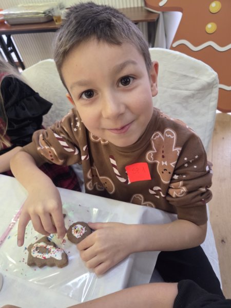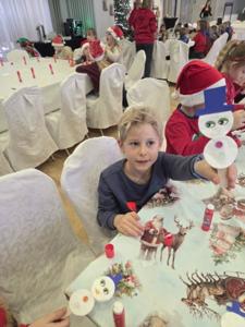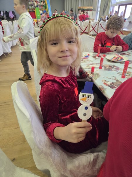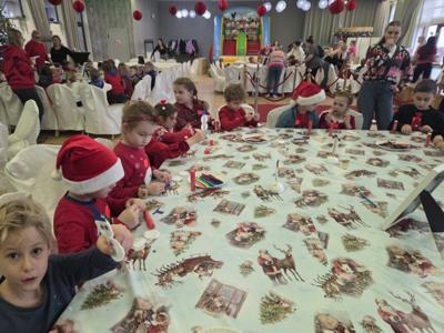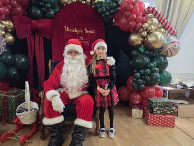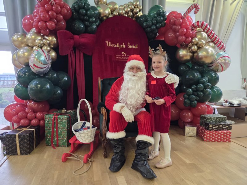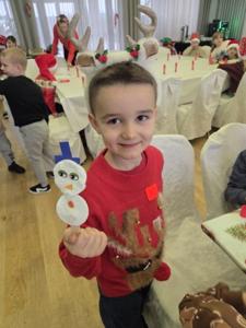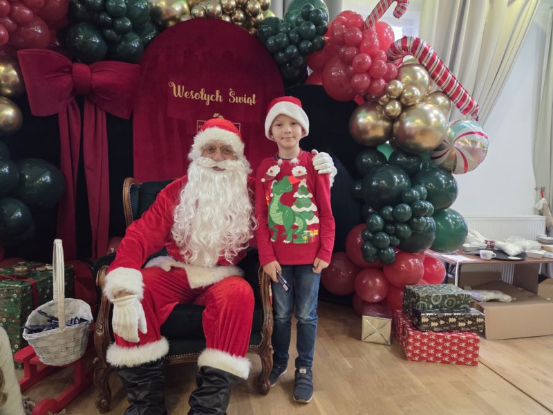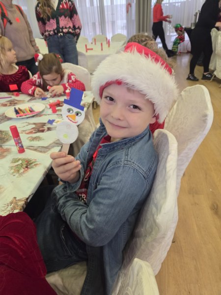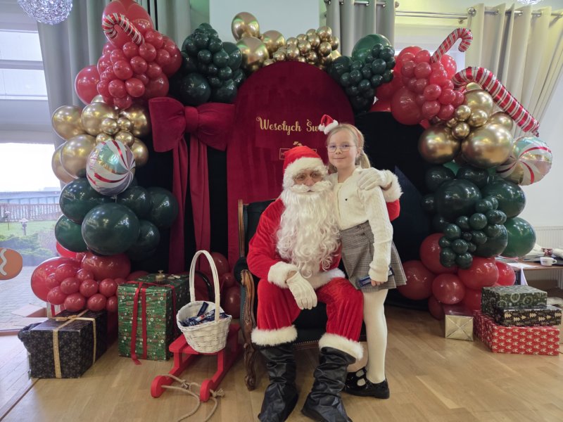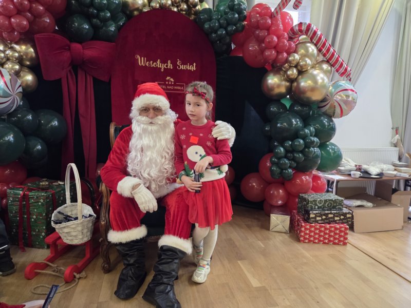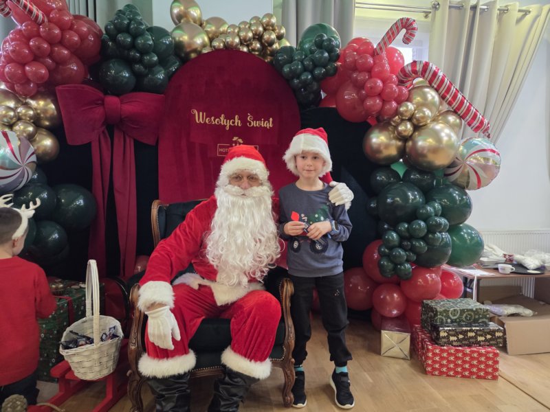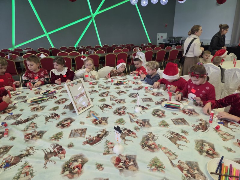 W piątek uczniowie klasy 1c wzięli udział w wyjątkowych warsztatach mikołajkowych, które odbyły się w Hotelu Nad Wisłą w Knybawie. Na wszystkich czekało wiele twórczych i pełnych radości zadań. Dzieci ozdabiały świąteczne pierniczki, wykonywały własne ozdoby z masy solnej oraz tworzyły kolorowe wydrapywanki. Nie zabrakło również wspólnego przygotowywania papierowych łańcuchów oraz pisania listów do Świętego Mikołaja. Dużą atrakcją dla uczniów był także dmuchaniec, który dostarczył mnóstwo ruchu i dobrej zabawy. W przerwie wszyscy zasiedli do pysznego obiadu – słodkich naleśników, które okazały się prawdziwym przysmakiem.Najbardziej niezapomnianym momentem tego dnia było jednak spotkanie ze Świętym Mikołajem. Dzieci z radością przywitały wyjątkowego gościa, który obdarzył je uśmiechem oraz ciepłymi słowami.Warsztaty upłynęły w atmosferze świątecznej magii, kreatywności i dobrej zabawy, a wspomnienia z tego dnia z pewnością pozostaną z uczniami na długo.