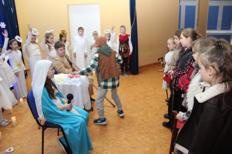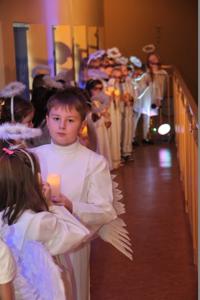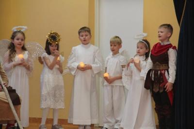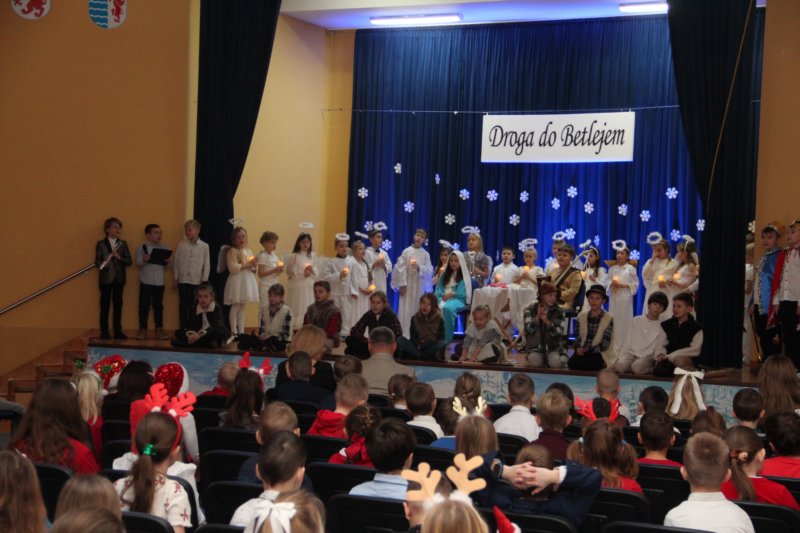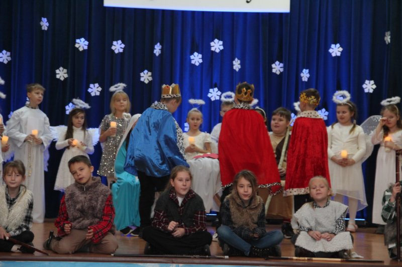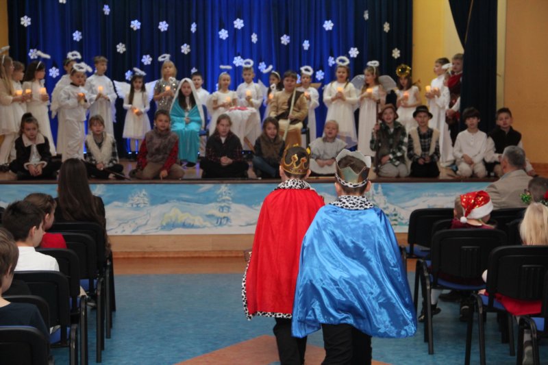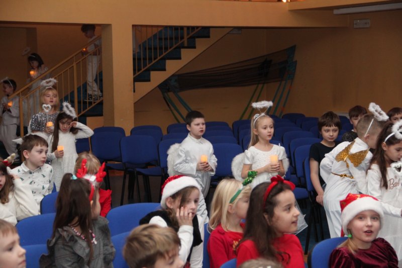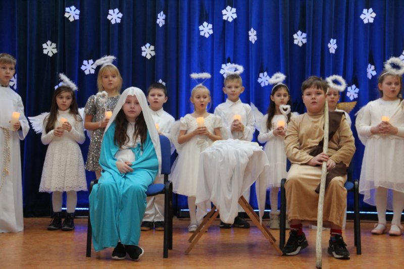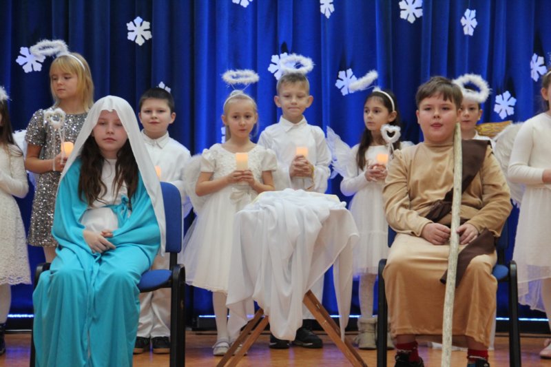 Magiczna świąteczna atmosfera, kolędy i radość najmłodszych uczniów podczas szkolnych jasełek.