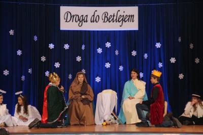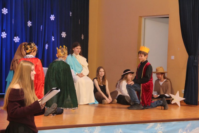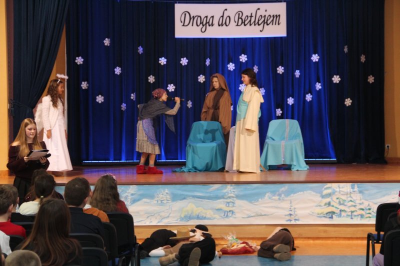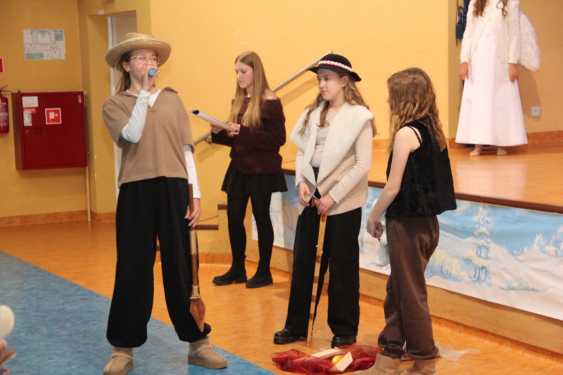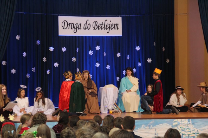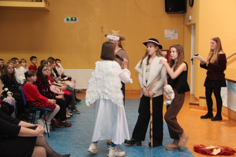 Bożonarodzeniowe jasełka w wykonaniu uczniów klas IV–VIII.
